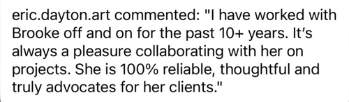 Working with Brooke was an absolute pleasure. She was efficient, communicative, and took the time to understand my needs, turning them into reality with creative solutions. Her input and advice were invaluable, providing ideas I hadn't considered. Brooke is definitely a leader in her field and I will definately be working with her again.